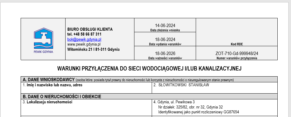 - Jeżeli rozbudowa lub przebudowa urządzeń będzie konieczna, to w odpowiedzi otrzymasz warunki techniczne lub indywidualną informację nt. procedury ich uzyskania.